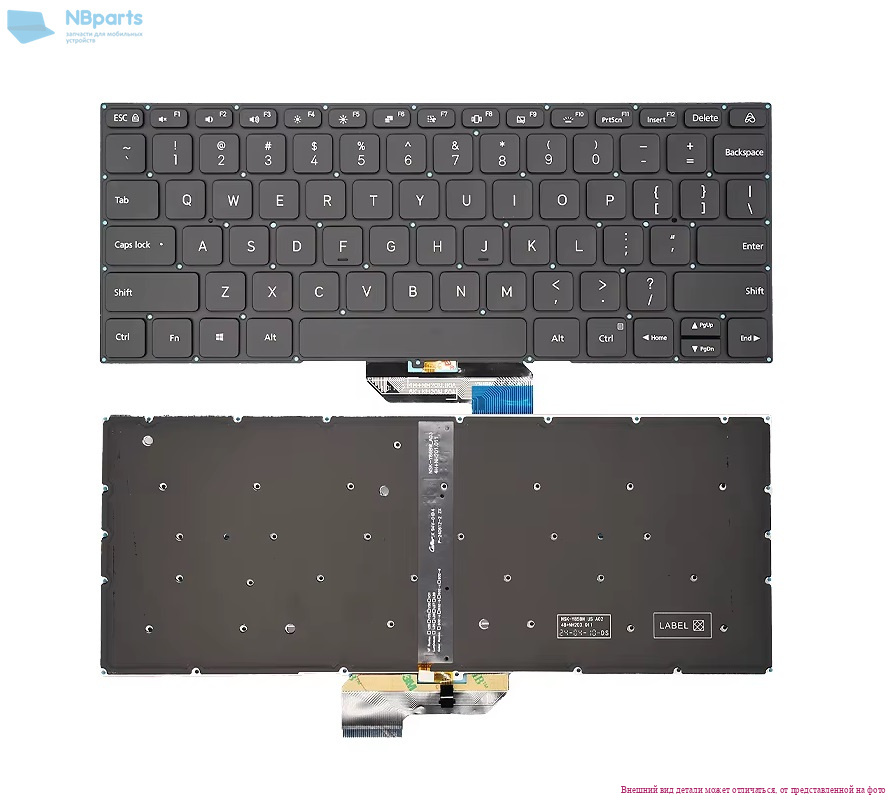 Клавиатура для ноутбука Xiaomi RedmiBook Pro 14 XMA2008, чёрная, с подсветкой, RU (NB)