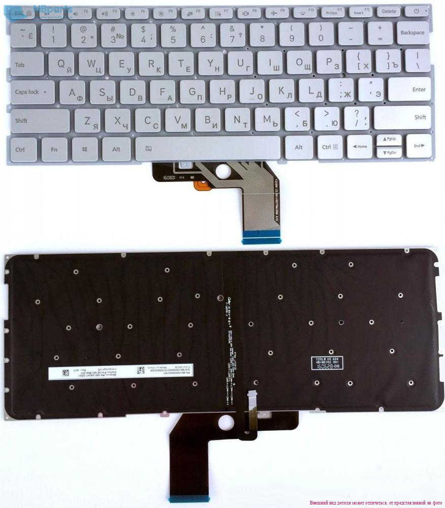 Клавиатура для ноутбука Xiaomi Air 13.3", серебряная, с подсветкой, V.2, RU