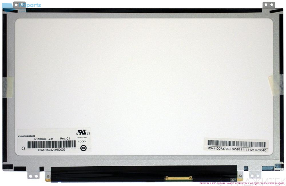Матрица N116BGE-L41 Rev C.2, 1366x768 HD, LVDS (1 ch, 6-bit), 40 pins, TN, матовая, уши верх - низ